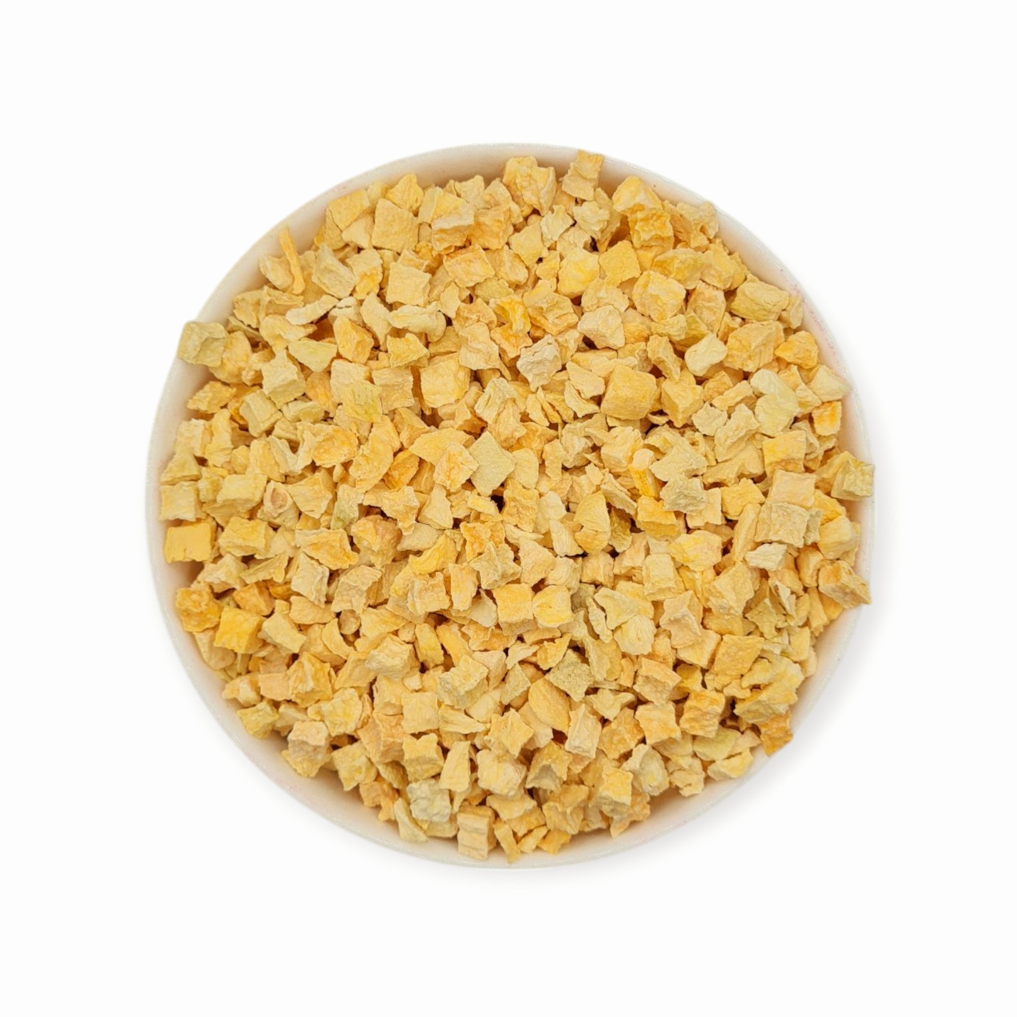 5. Długa trwałość: Liofilizowana brzoskwinia ma długi okres trwałości, ponieważ proces liofilizacji usuwa wodę, co zapobiega rozwojowi bakterii i pleśni. Można ją przechowywać przez długi czas bez utraty smaku i wartości odżywczych.