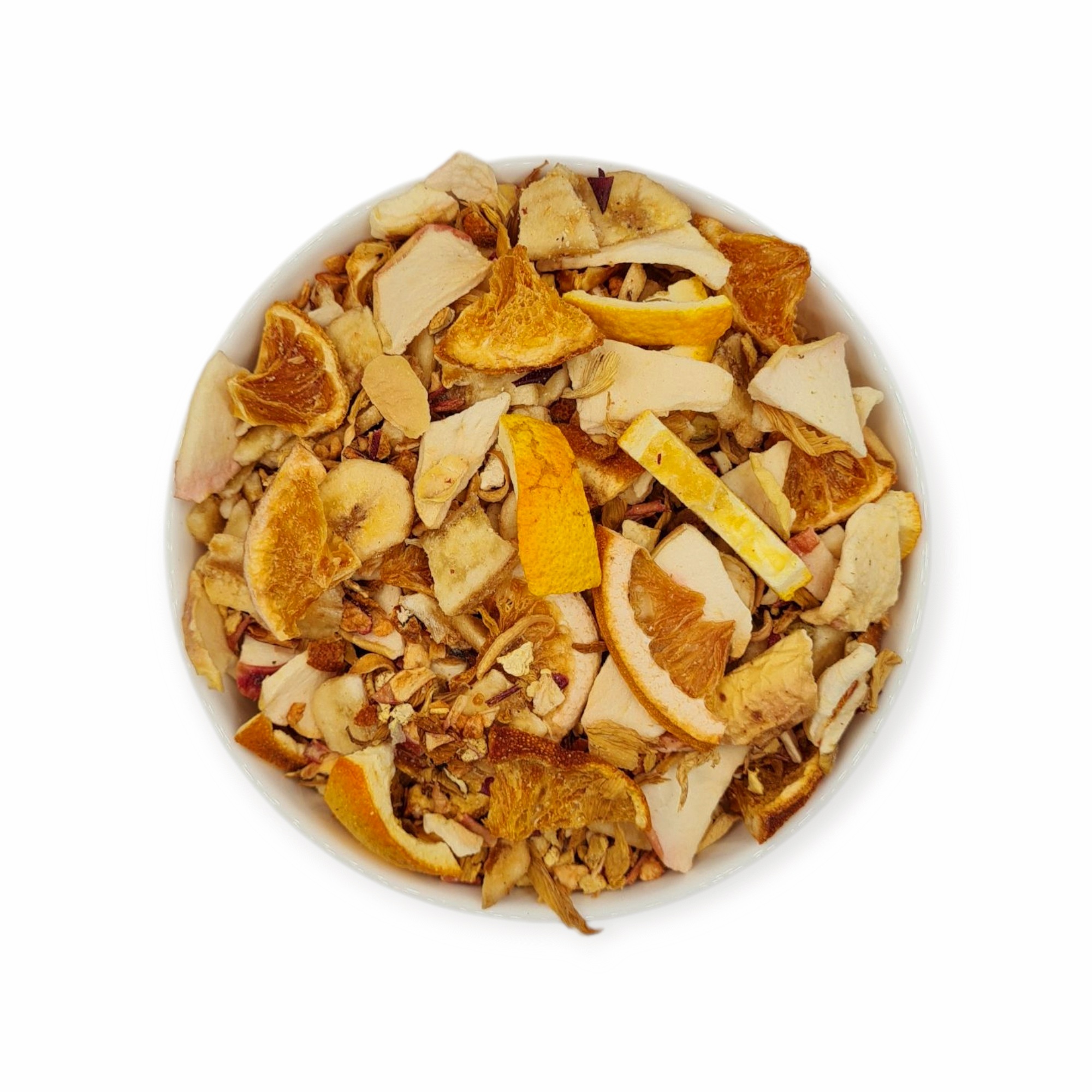 Pomarańczowe Bogactwo to herbata, która wyzwala pełnię smaku! Czwórka pomarańczowych bohaterów – od suszonych kawałków po liofilizowane fragmenty – tworzy napar pełen cytrusowej świeżości i naturalnej słodyczy. Każdy łyk to eksplozja witamin, błonnika i minerałów, które niosą za sobą prawdziwą moc natury. Skórka pomarańczy nadaje charakteru, a płatki kwiatu pomarańczy wprowadzają subtelny, słoneczny zapach, który rozświetla każdy dzień.