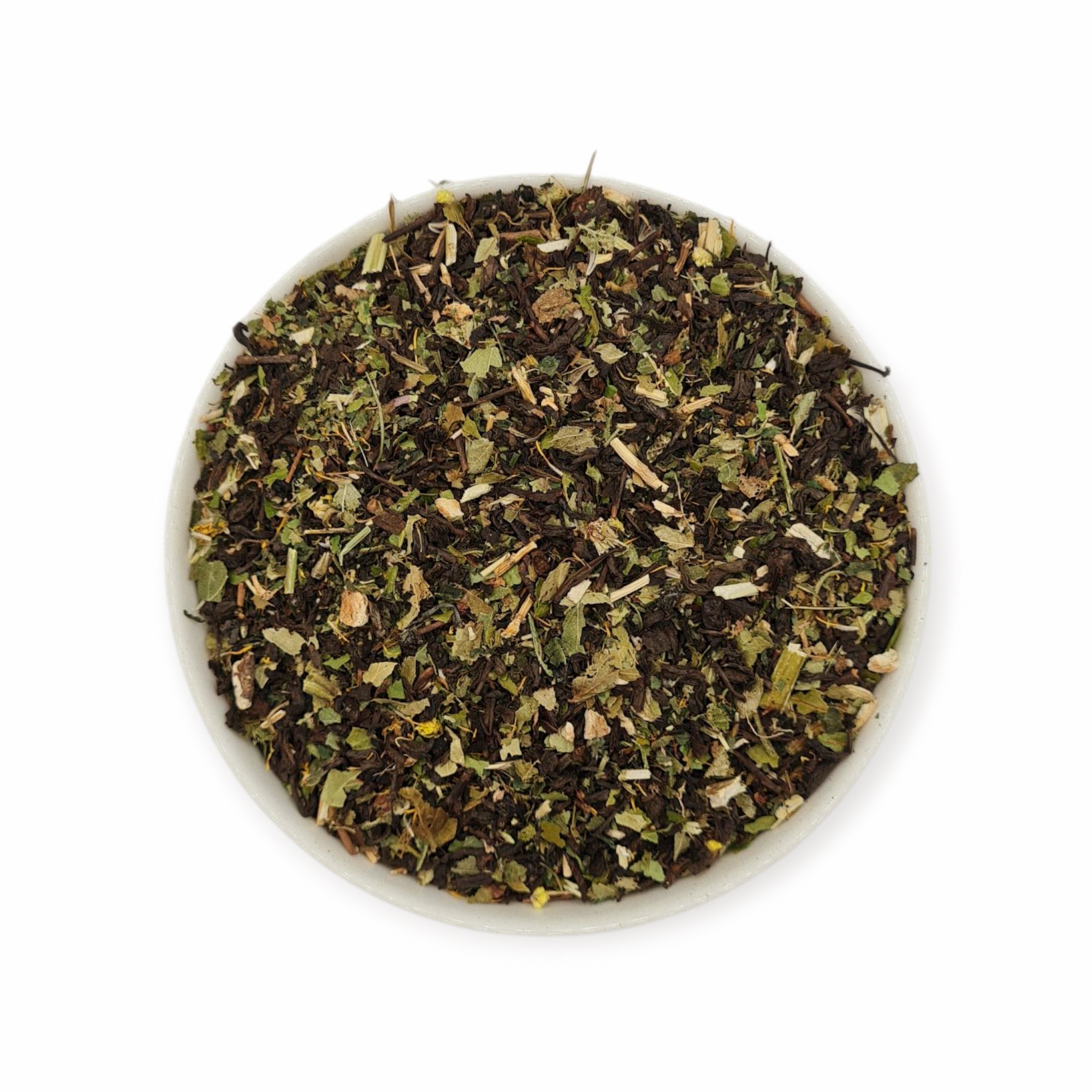 Składniki: herbata czerwona Pu Erh, liść pokrzywy, ziele cykorii, korzeń cykorii podróżnik, liść czernicy, brzozy, owoc bzu czarnego, korzeń mniszka, kłącze perzu, kwiatostan kocanki.
