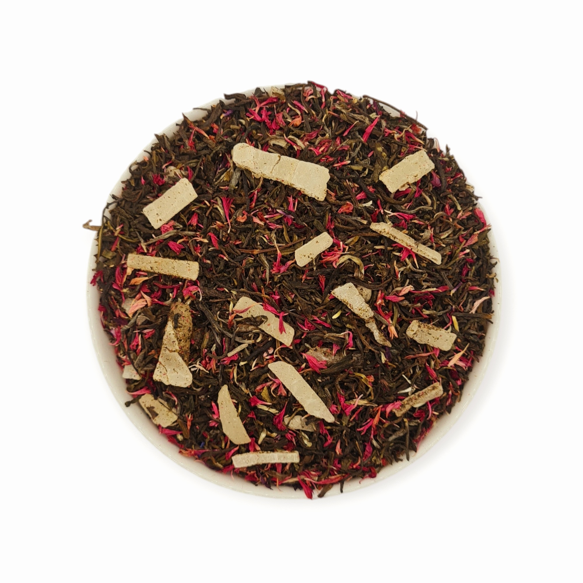 Składniki: herbata biała China OP, aloes kandyzowany (aloes, cukier, substancja konserwująca E220), płatki bławatka różowego, aromat.