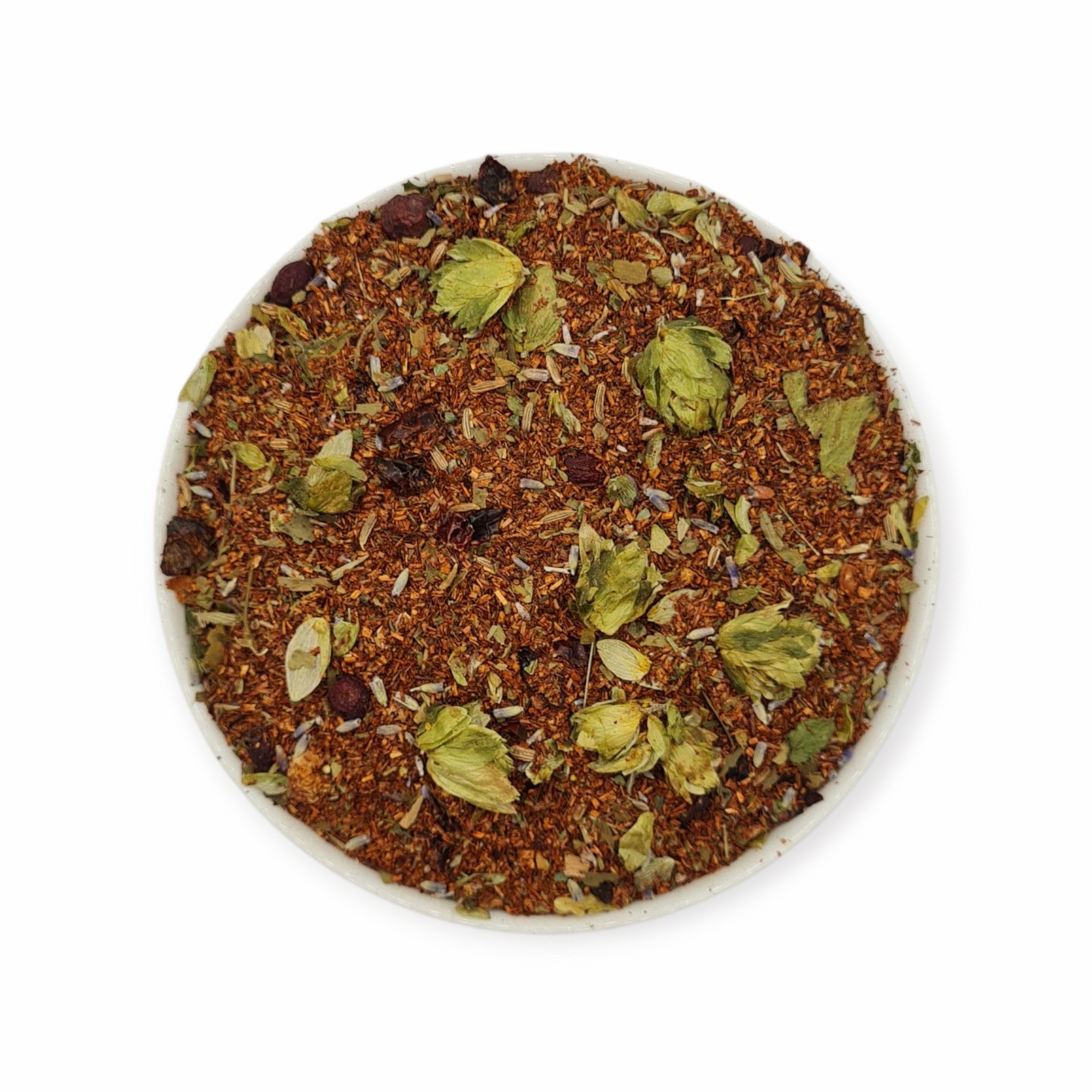 Składniki: herbata Rooibos, dzika róża, głóg jednoszyjkowy, melisa lekarska, chmiel zwyczajny, fenkuł (koper włoski), lawenda wąskolistna.
