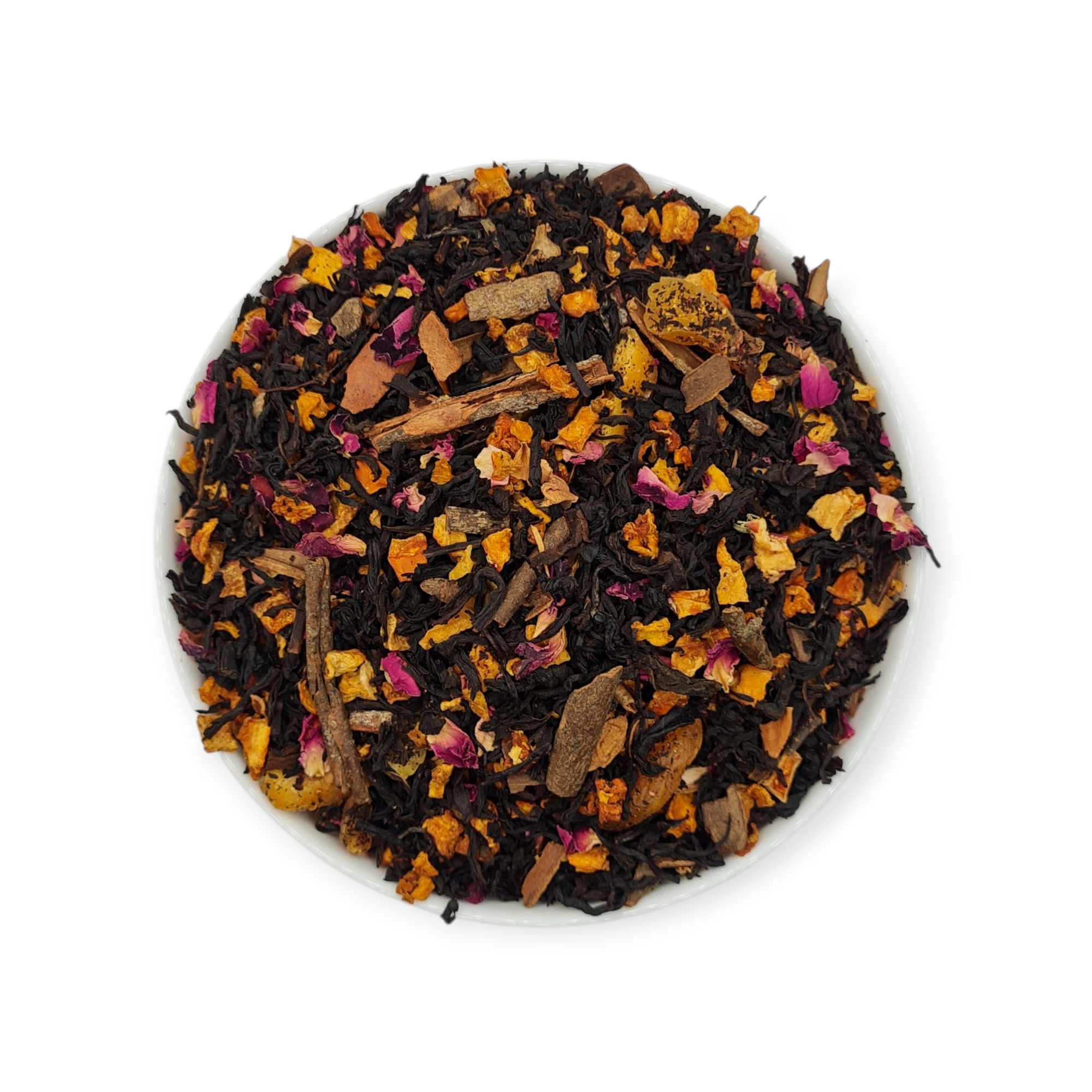 Dynia w Cynamonie to herbata, która zamienia każdy zimowy wieczór w chwilę prawdziwego ciepła i komfortu. Pełna, aksamitna baza czarnej herbaty Assam FOP łączy się z naturalną słodyczą suszonej dyni i moreli, tworząc harmonijną kompozycję z delikatnym korzennym akcentem kory cynamonu. Płatki róży dodają subtelnej kwiatowej elegancji, a wanilia wprowadza kremowy, przytulny aromat, który idealnie komponuje się zarówno w czystym naparze, jak i w herbacianym latte ze spienionym mlekiem.