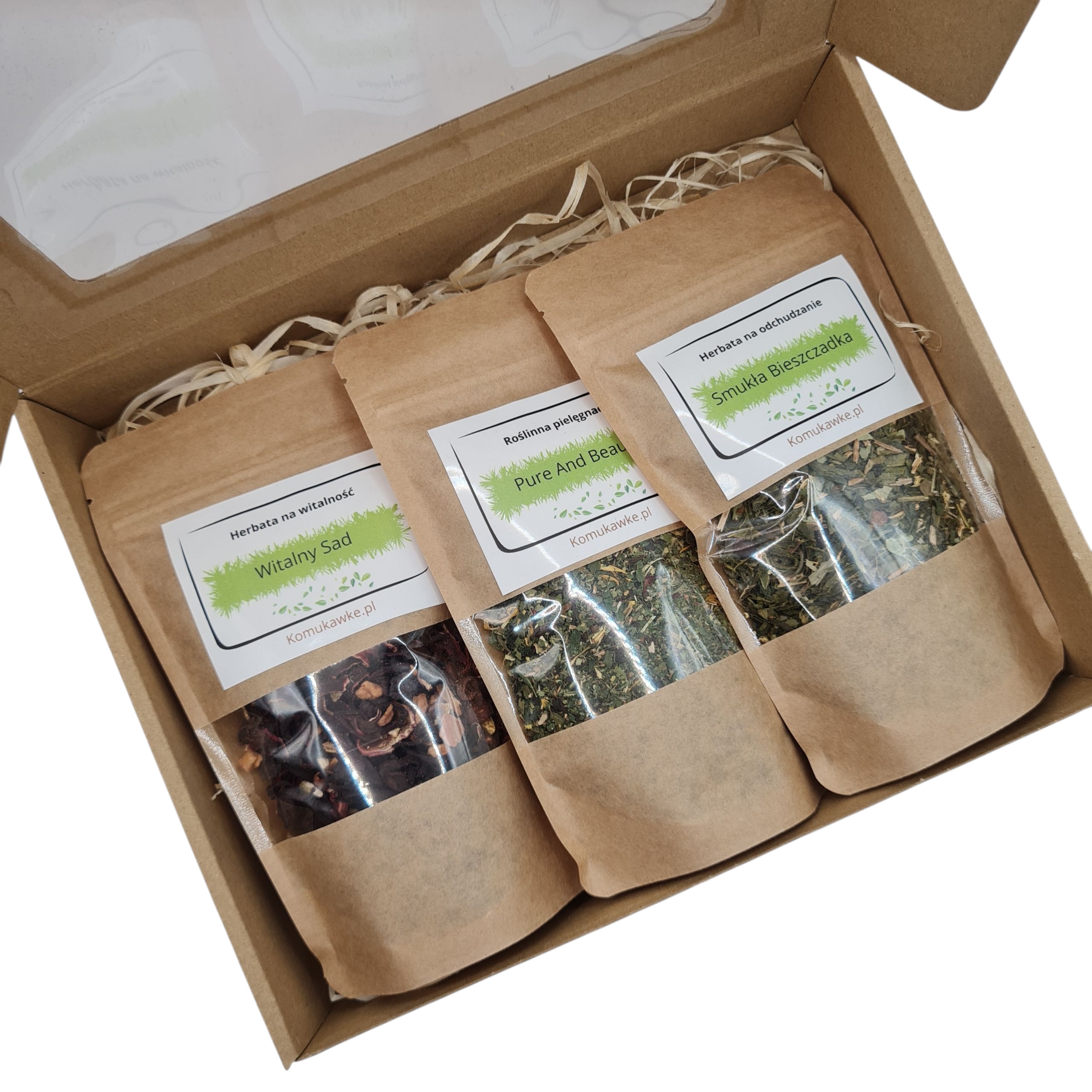 Ten zestaw to nie tylko trzy wyjątkowe herbaty – to mały rytuał, który pozwala zwolnić, zatroszczyć się o ciało i duszę, a przy okazji delektować się smakiem natury.